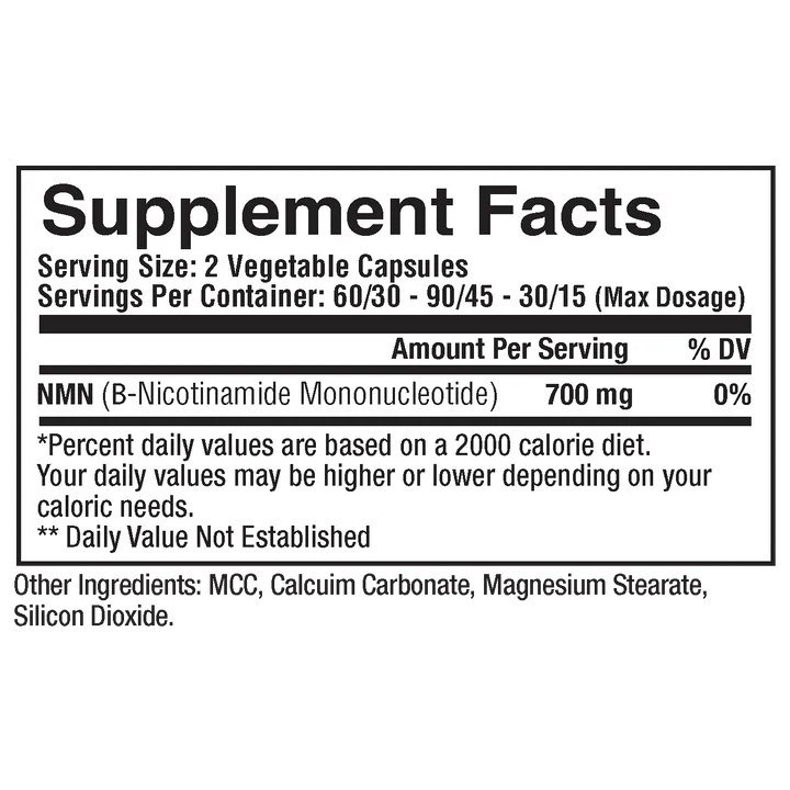 Metabolic Nutrition NMN (B-Nicotinamide Mononucleotide) 700 mg High-potency, industry-leading dose is designed to deliver meaningful NAD+ precursor support that you can feel working.  Metabolic Nutrition NMN is produced under stringent quality controls to ensure purity, potency and backed by science formula so you know it will work!  Sourced and manufactured to high standards to promote consistent absorption and results for you, our customer. We’re confident you’ll love the results of Metabolic Nutrition NMN and if you’re not completely satisfied, we offer a 100% money-back guarantee. Simply return your purchase within 30 days of purchase for a full “no questions asked” refund.